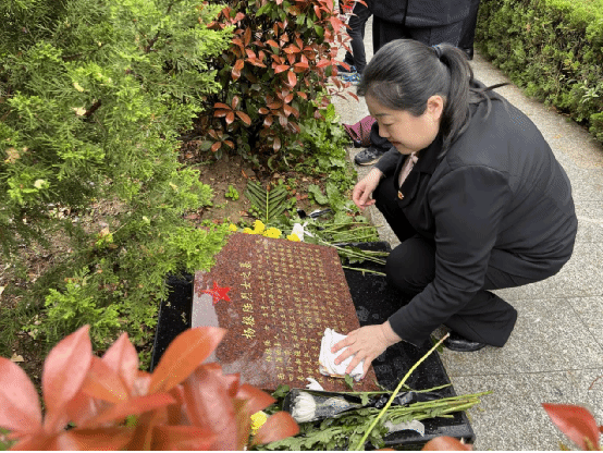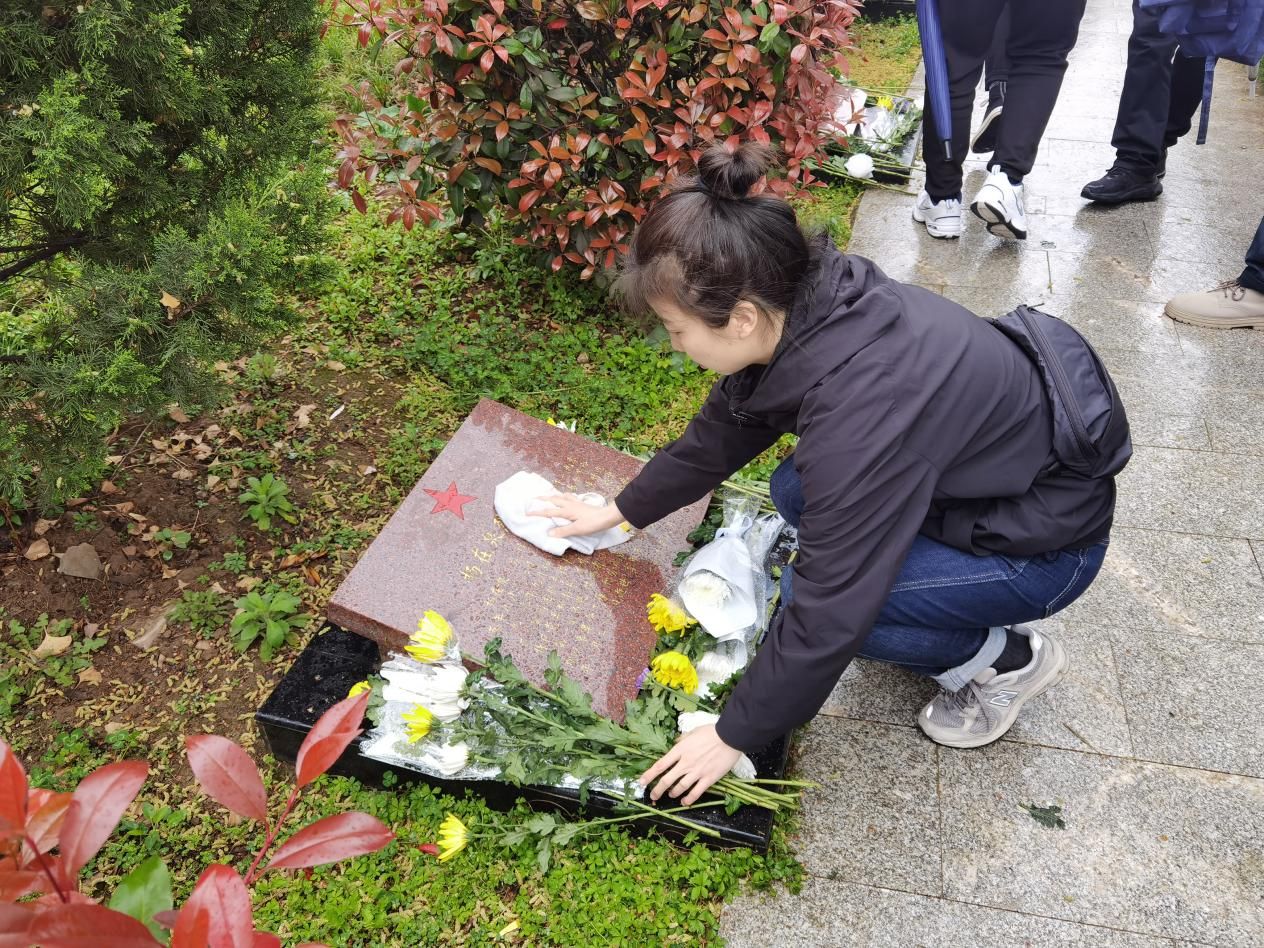 活动最后一项,全体师生进入陵园,依次敬献鲜花,并俯身于烈士墓碑前,怀着崇敬的心情,认真、仔细地擦洗着烈士墓碑,以此表达对革命先烈们的哀思和敬仰之情。