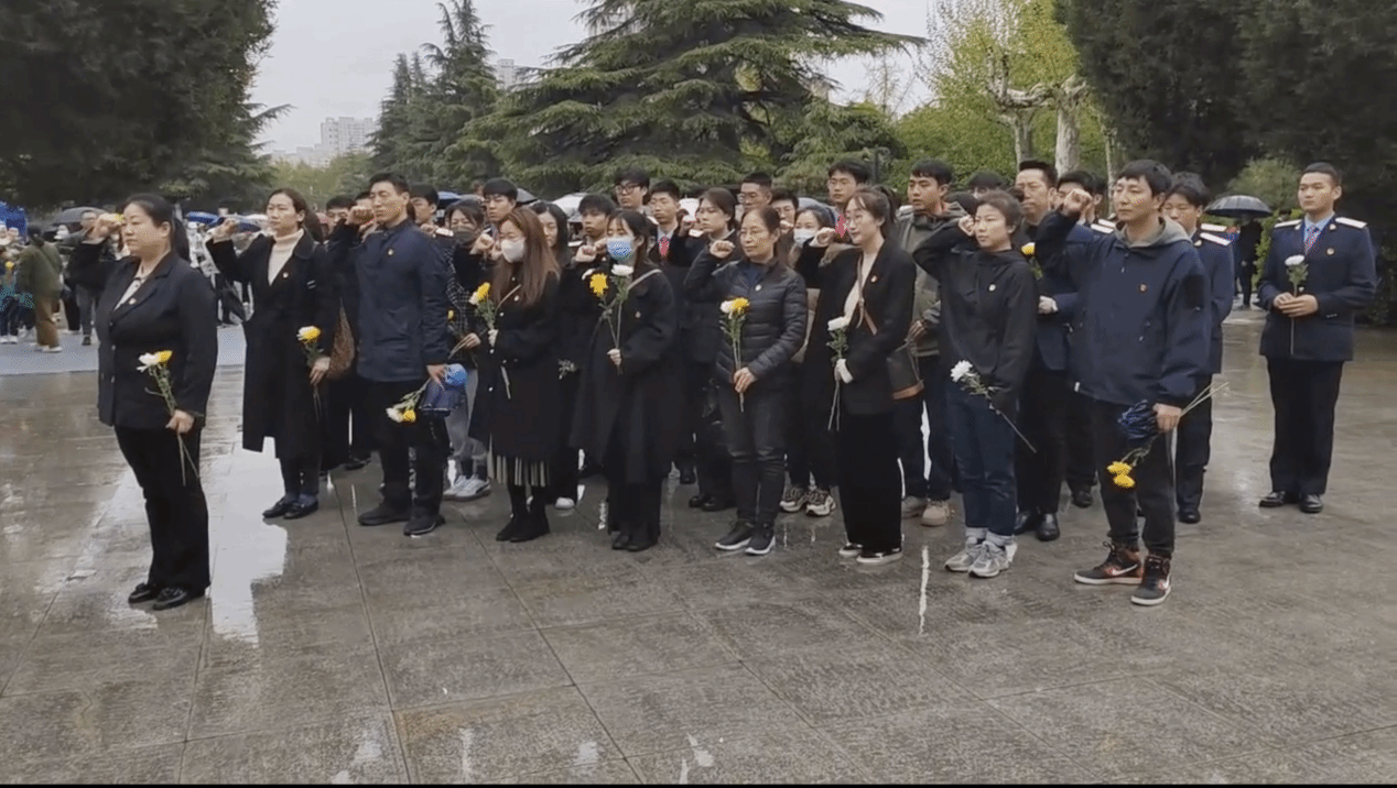 西安烈士陵园内安息着大革命时期英勇就义的革命志士王德安等“九烈士”,抗日战争中的民族英雄刘桂伍、宣侠父、解放战争中的爱国民主人士杜斌丞、战斗英雄秦富德,抗美援朝中的“八勇士”之一候天佑,社会主义建设时期雷锋式的英雄模范张华以及王周斌、祝选朋等一大批革命先烈。在庄严肃穆的烈士纪念碑前,全体人员整齐肃立向革命烈士默哀致敬,表达了对革命先烈的无限哀思。