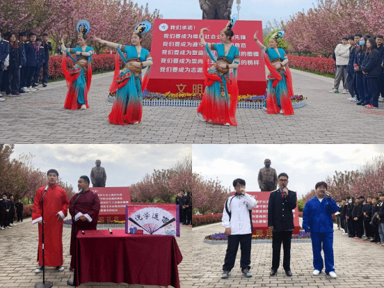 教职工代表张丽媛、学生代表饶坤峰依次上台作了表态发言。千名师生在学生代表何健翔的带领下面对“文明宣言”,进行了庄严的宣誓。
