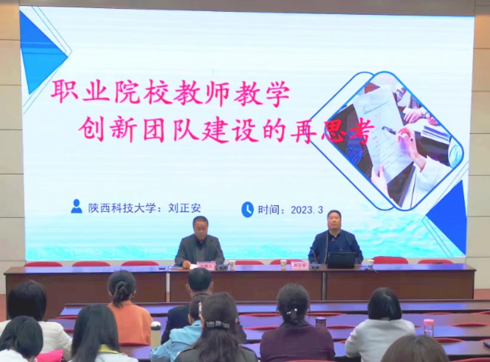 为高效落实学院2023年工作任务,推进重点突破项目建设,加强铁道交通运营管理专业国家级教师教学创新团队建设,3月15日下午,交通运输学院特别邀请陕西科技大学刘正安教授,在自强校区阶梯教室,做了“职业院校教师教学创新团队建设的再思考”的专题讲座。交通运输学院院长徐小勇、党总支书记任卫东、副院长王公强以及全体教职工参加了本次会议。