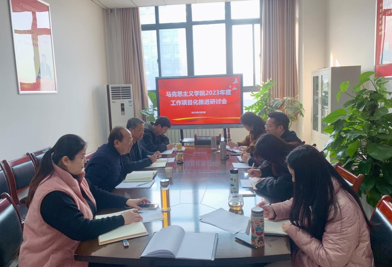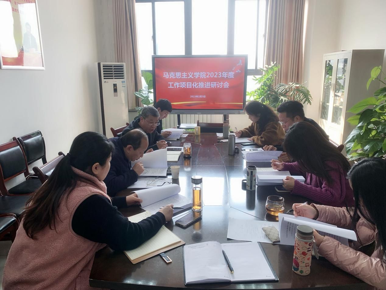 为尽快落实2023年度各项重点工作,2月3日,马克思主义学院在港务校区召开了2023年度工作项目化推进研讨会,办公室主任、各教研室主任、教务员参加会议,党委副书记任治军出席会议。会议由马克思主义学院院长景延鹏主持。