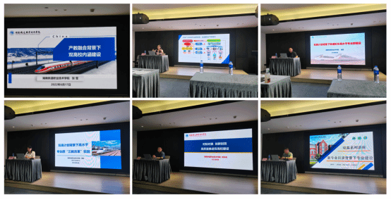 本次培训湖南铁道职业技术学院张莹院长做了顶层设计报告:产教融合背景下的双高校内涵建设;莫坚做了专业群规划篇:双高计划背景下铁道机车高水平专业群建;陶艳做了三教改革篇:双高背景下高水平专业群“三教改革”实践;刘志成做了实施管理篇:对标对表创新创效高质量推进双高校建设;段树华做了专业群成效篇:新专业背景下专业建设。整个培训从双高校内涵建设、专业群建设层面做了详细阐述,另外对如何迎检,怎样迎接下一轮遴选做了重点分析和做法讲解。