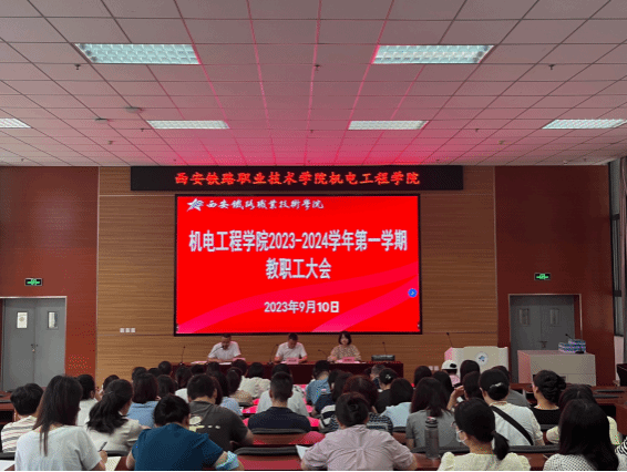 9月10日,机电工程学院在阶梯教室召开新学期教职工大会。学院全体教职工参会,会议由副院长郭峰主持。
