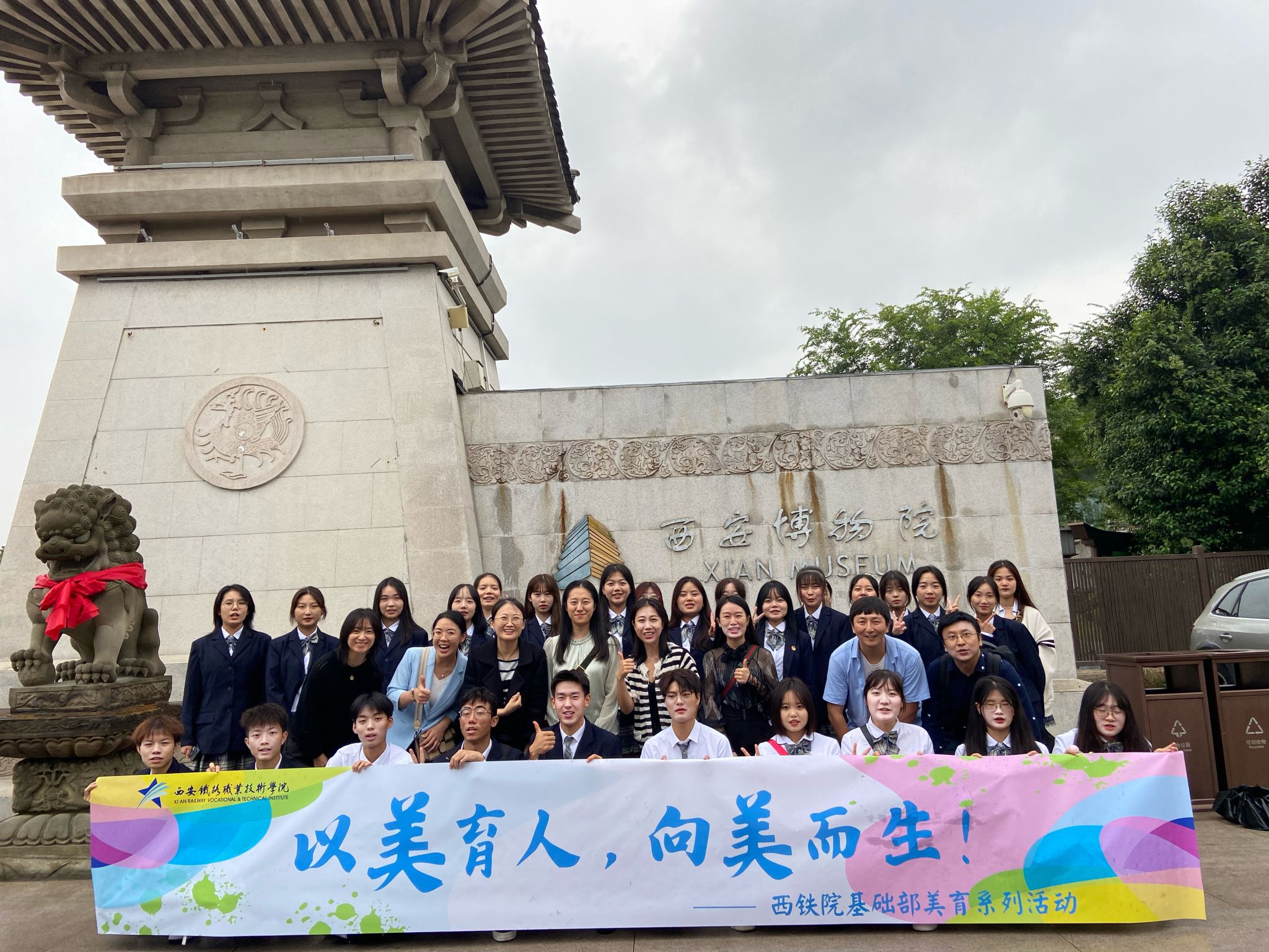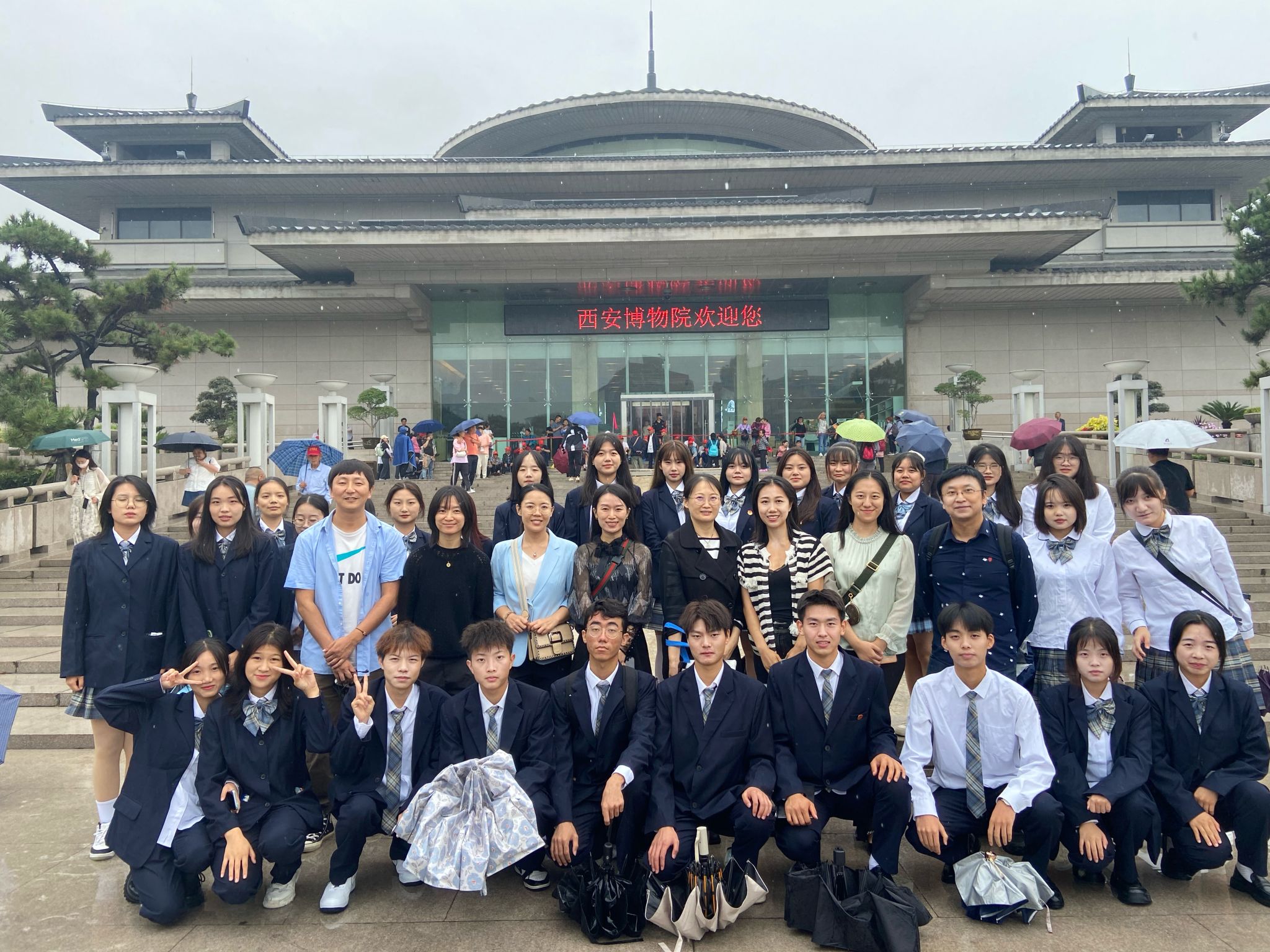 为不断提升贝博官网美育教育,深入挖掘文化艺术教育形式,促进贝博官网学生在文化艺术的滋养和沁润中五育并举、全面发展、健康成长。9月20日基础部学前教育专业三十余名学生在艺术教研室老师的带领下前往西安博物院进行参观学习。