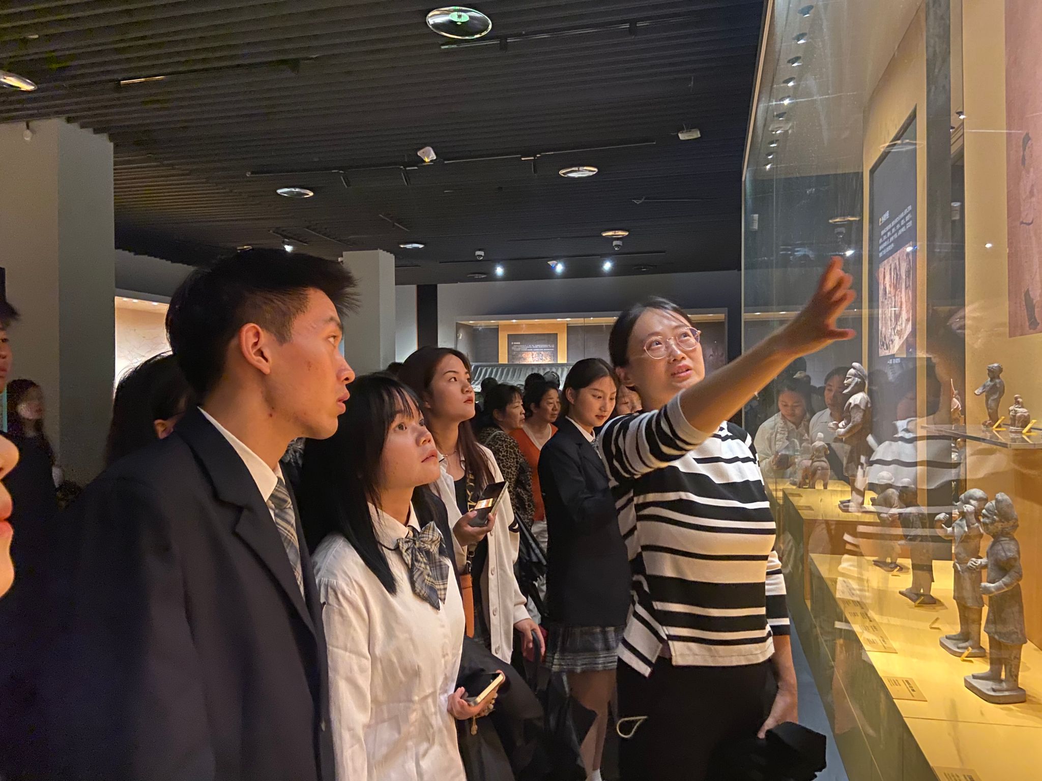 首先,跟随着老师,同学们从小雁塔的构建、历史价值了解古代建筑艺术之美和时代特点。其次,通过陈列馆内造型各异的器具、精美的唐三彩、栩栩如生的人物俑和独具特色书画艺术,不断加深对历史文化的认知。整场活动,同学们认真记录、主动提问,气氛十分活跃。