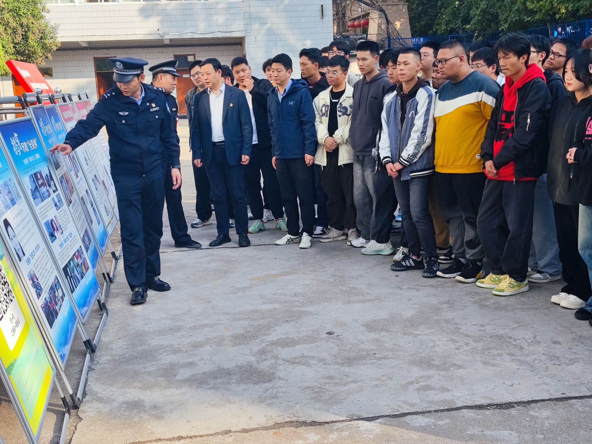 为全面落实学生法制宣传教育,加大对宗教政策法规的宣传力度,提高学生反电信网络诈骗及识毒、防毒、拒毒能力,增强自我防范意识,打造风清气正的育人环境,校区邀请了公安局临潼分局国保大队大队长于胜利、骊山派出所副所长付北峰、国保大队民警金磊以及反诈中心民警马雨婷等7名警官于10月23日下午,在校区开展警示教育系列活动。校区党总支书记兼主任张军、学工办主任高永刚、保卫科相关人员、部分辅导员和班主任全程参与了活动。