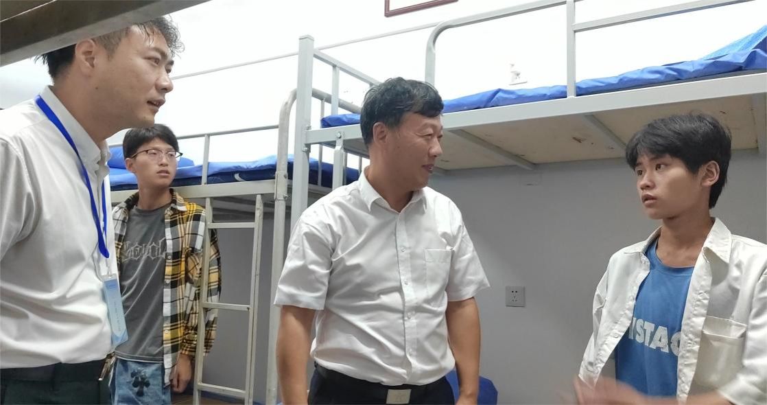 为深入了解学院新生住宿情况,关心关怀新生生活,帮助新生更好的适应学校生活,9月14日下午五点,电子信息学院党总支书记吴西蒙、学工办主任薛明深入自强校区男生三公寓,走访慰问新生,查看新生住宿环境,关心新生入学生活情况。