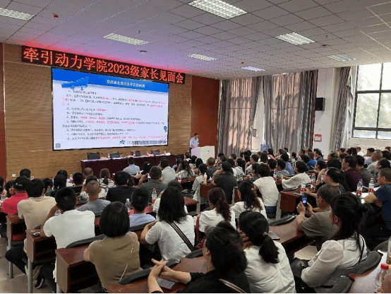 为搭建新生家长与学校之间良好的沟通平台,进一步宣传学院的人才培养理念,牵引动力学院于下午14:00在一楼阶梯教室召开了2023级新生家长会。牵引动力学院院长李益民、党总支书记李贞伟、副院长林辉、办公室主任肖贤、学工办主任陈广勇等人参加了会议。牵引动力学院学工办辅导员刘文峰老师首先介绍了学生就业相关情况,接着学工办主任陈广勇就学生的教育管理规定方面向新生家长简单说明,希望学生、家长、社会三方配合,以就业为导向,提升学生综合素质,保证学生自身安全,学会做人、做事、健康成长。