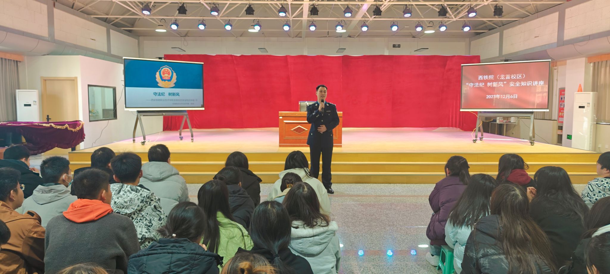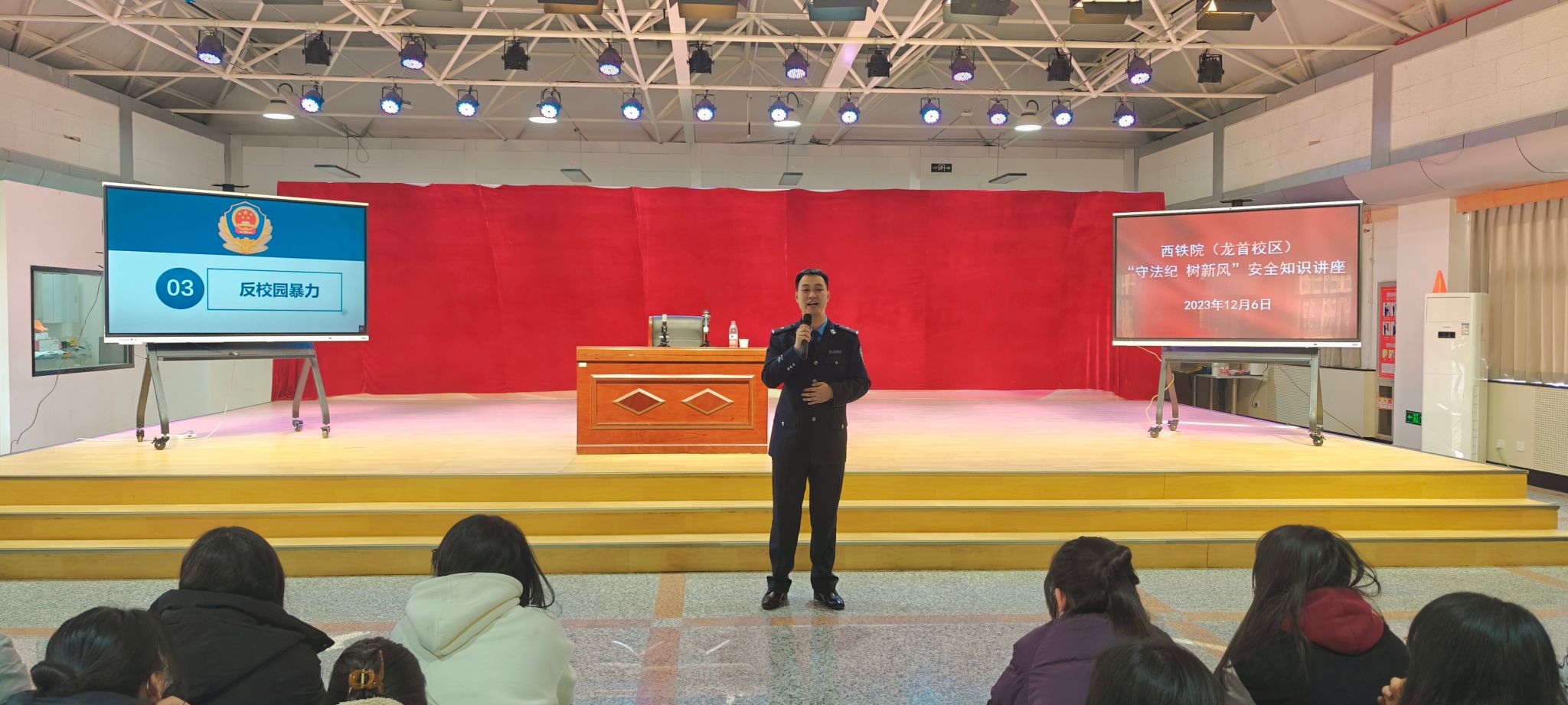 普及法律知识,提高防范意识,创建文明校园,助力学院“双高”建设。12月6日,龙首校区邀请属地友好共建单位——自强路派出所公安干警杨春联、杨瑞,赴校区为300多名师生代表开展“守法纪,树新风”安全知识讲座。