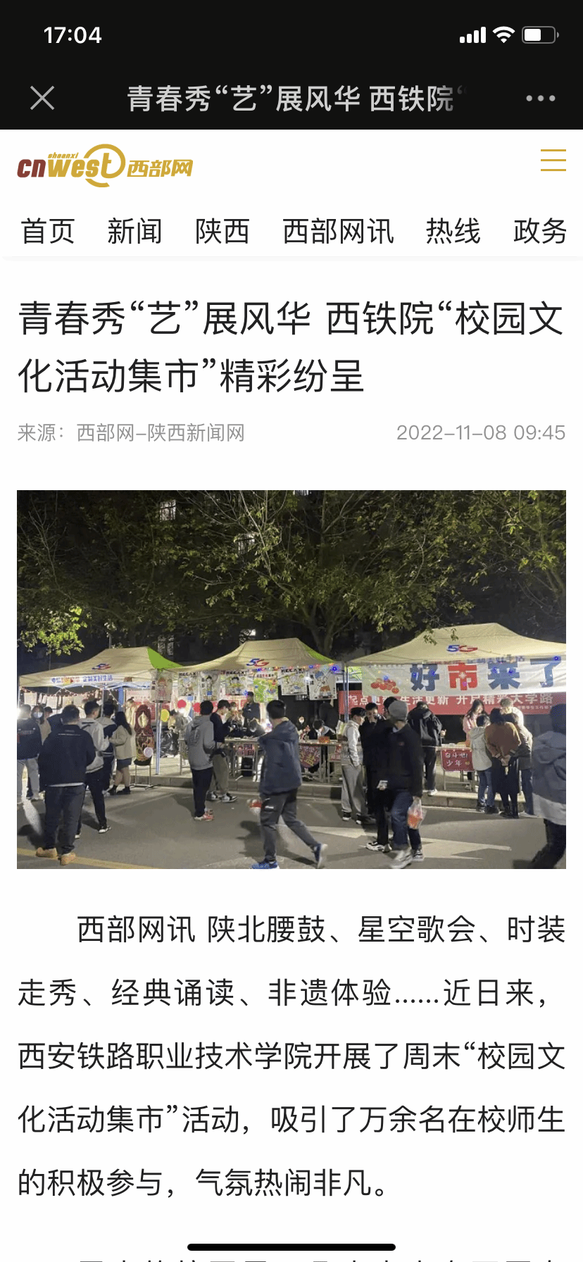 青春秀“艺”展风华 西铁院“校园文化活动集市”精彩纷呈 - 西部网(陕西新闻网)