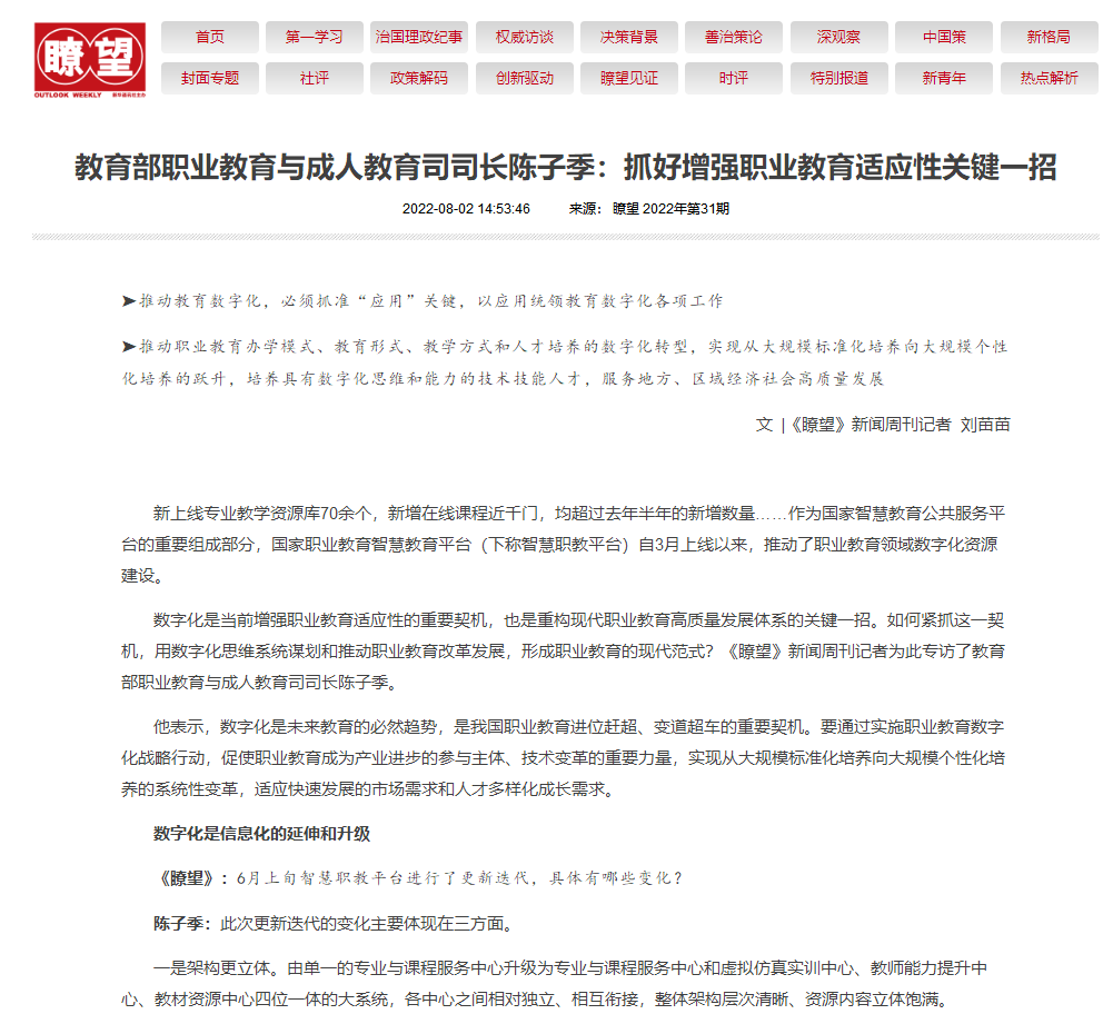 教育部职业教育与成人教育司司长陈子季:抓好增强职业教育适应性关键一招