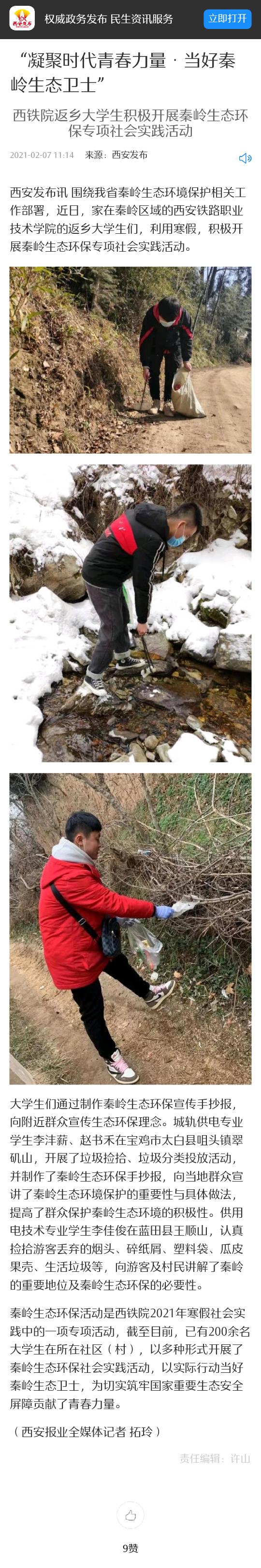 凝聚时代青春力量·当好秦岭生态卫士” 西铁院返乡大学生积极开展秦岭生态环保专项社会实践活动--西安发布