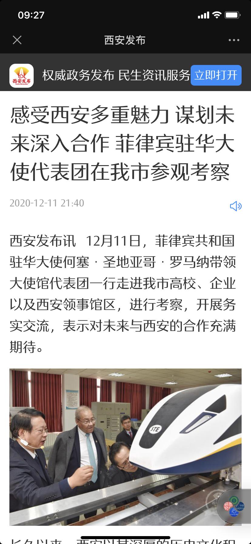 感受西安多重魅力 谋划未来深入合作 菲律宾驻华大使代表团在我市参观考察
