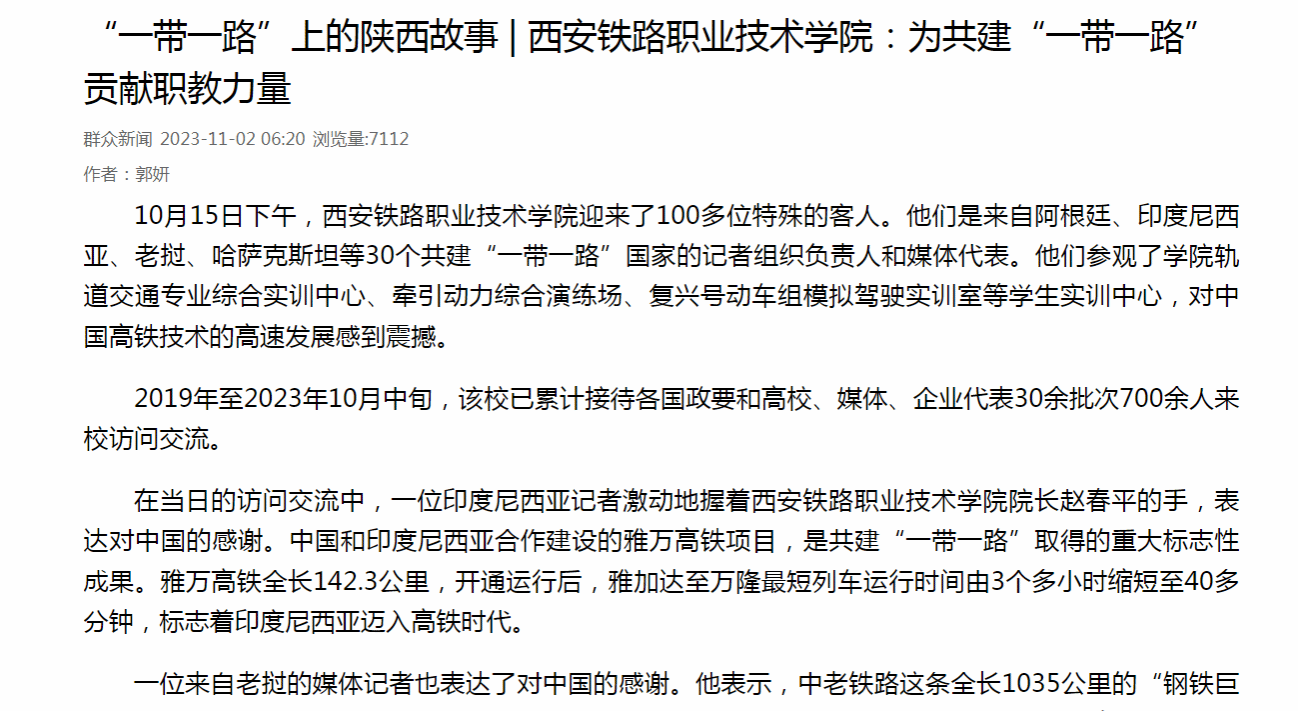 “一带一路”上的陕西故事 | ballBET贝博BB艾弗森:为共建“一带一路”贡献职教力量