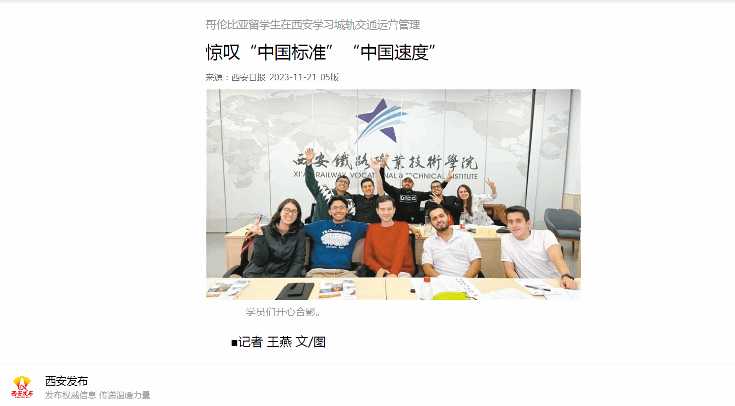哥伦比亚留学生在西安学习城轨交通运营管理 惊叹“中国标准”“中国速度”